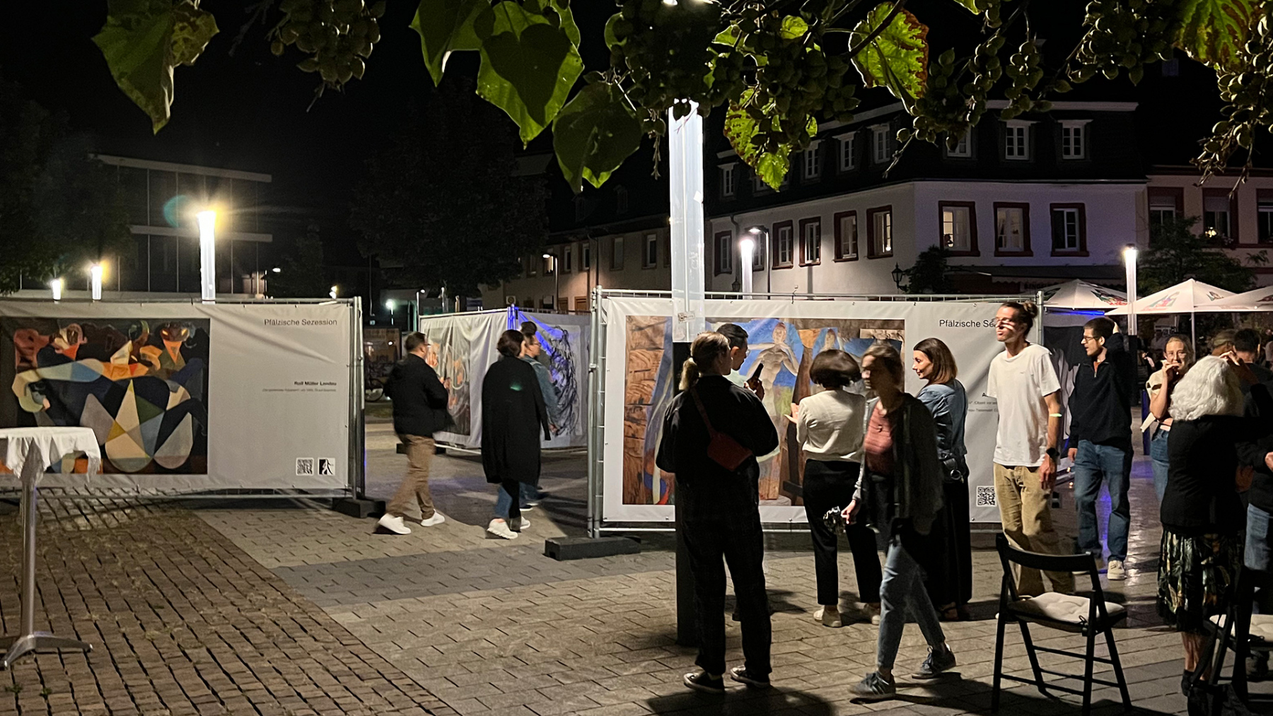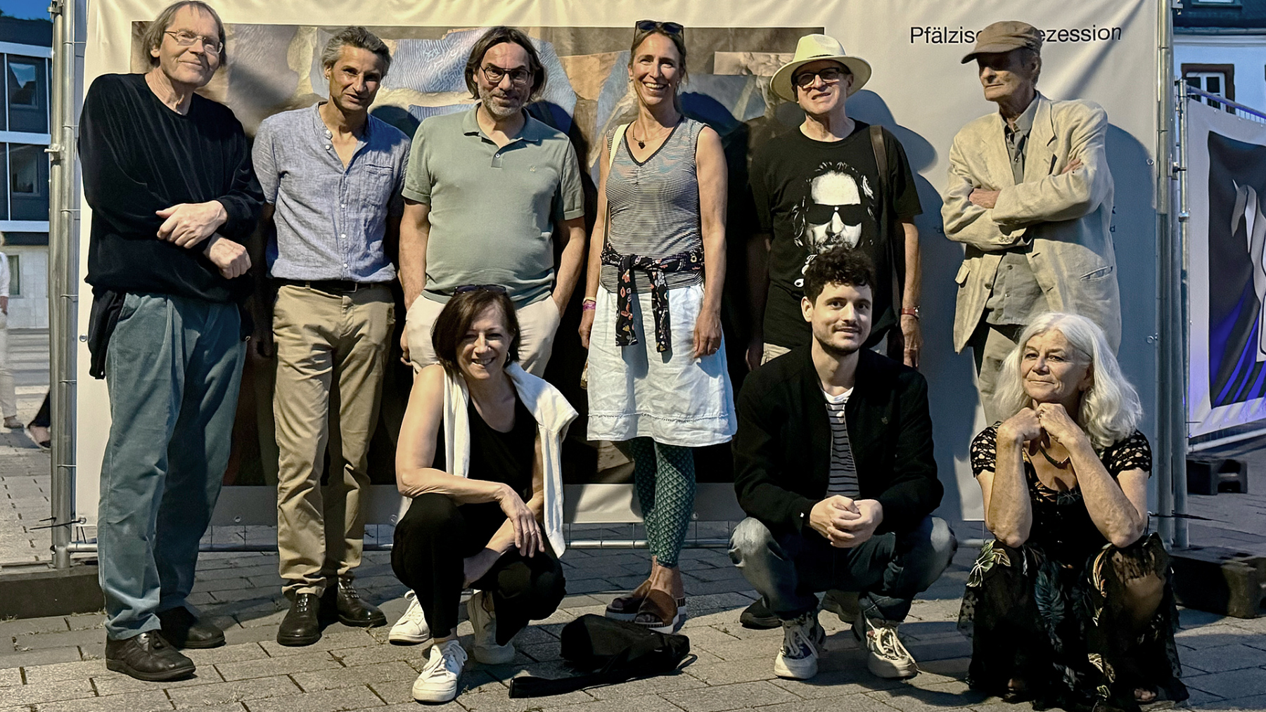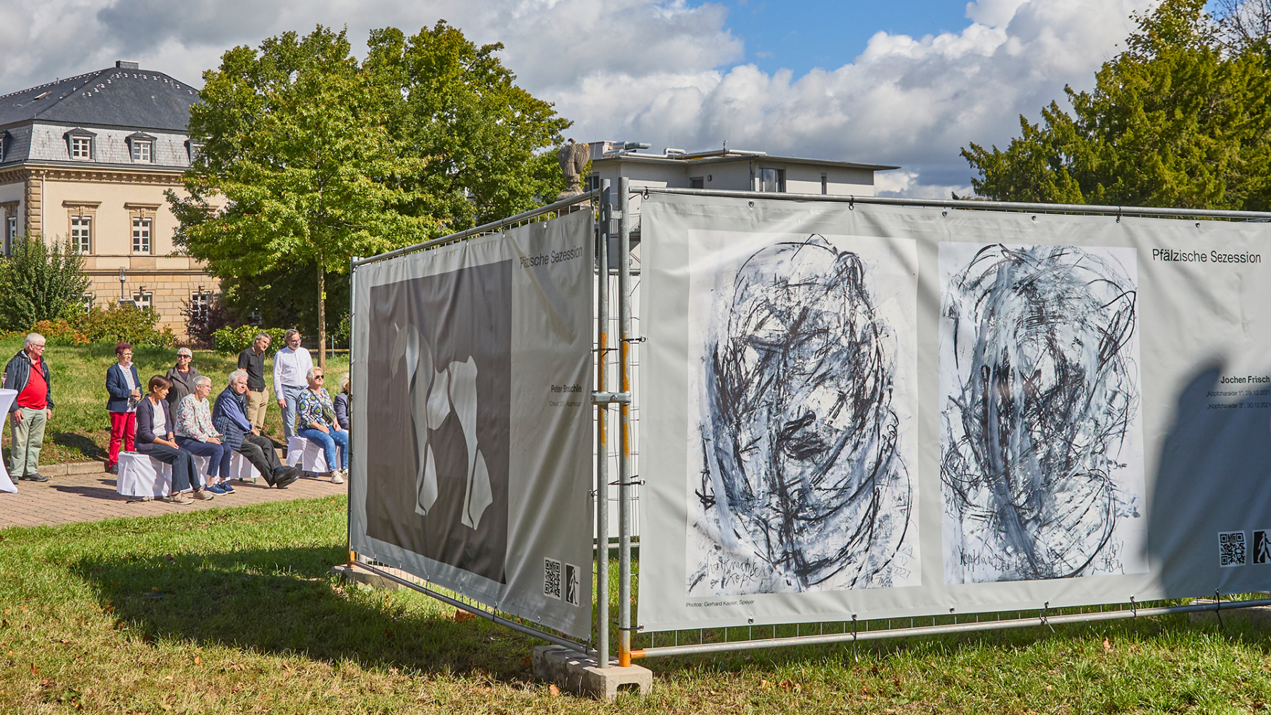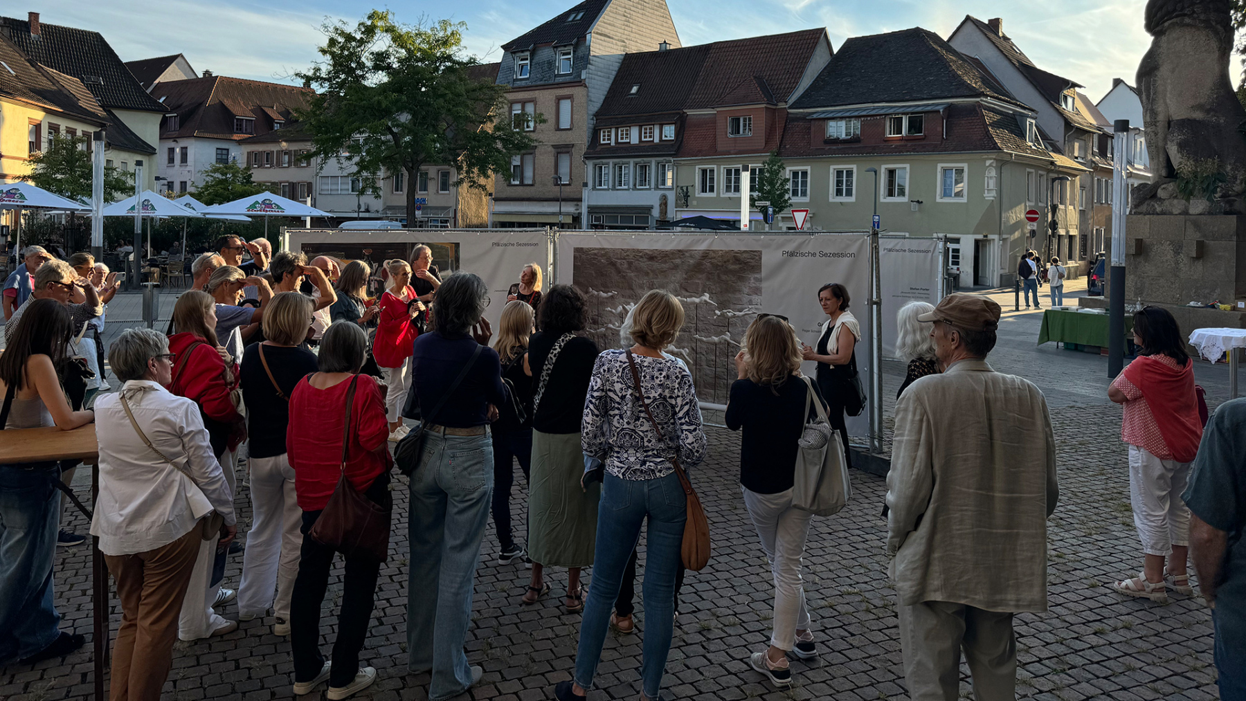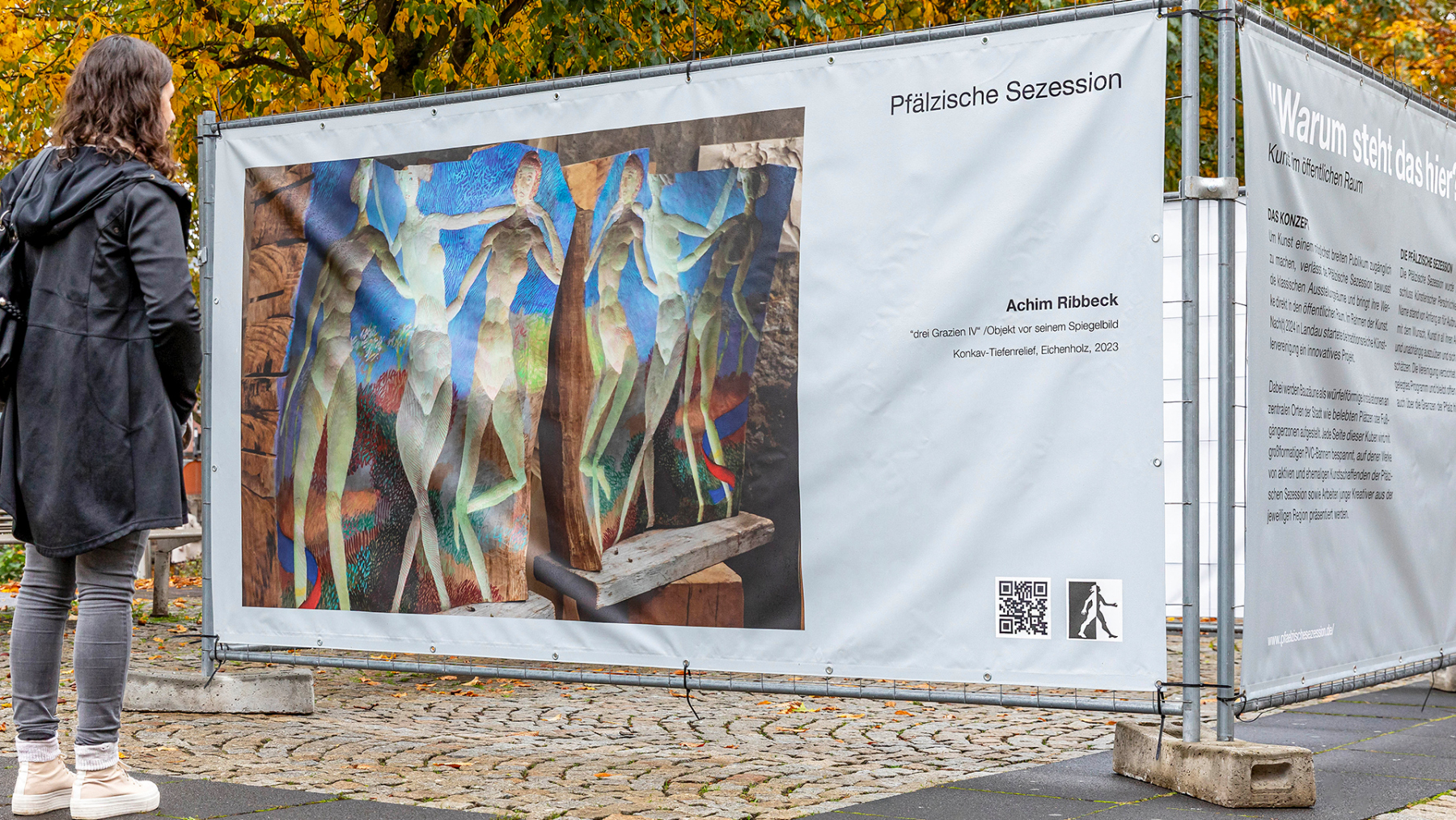 Die Pfälzische Sezession brachte 16 großformatige Banner mit aktuellen Kunstwerken (Malerei, Grafik, Plastik) nach Kaiserslautern, das Citymanagement kümmert sich um die entsprechende Infrastruktur für die Ausstellung: 4 Wochen im Spätherbst- eine Kunstausstellung im öffentlichen Raum, für alle Menschen in der Stadt, 24 Stunden am Tag. Da dieser Platz gerne von jungen Menschen unterschiedlicher Nationalität genutzt wird, war es super zu erleben, wie Kunst jenseits von Sprach- oder Kulturunterschieden angenommen wird. Die Vernissage auf dem Theatervorplatz wurde künstlerisch begleitet von Present Art Collection (H. Engelhardt, Martin Haberer). Trotz Regen kamen Besucher und es gab wieder regen Austausch über Kunst, begleitet von Musik und Cremant … Germersheim in der Planung/2026