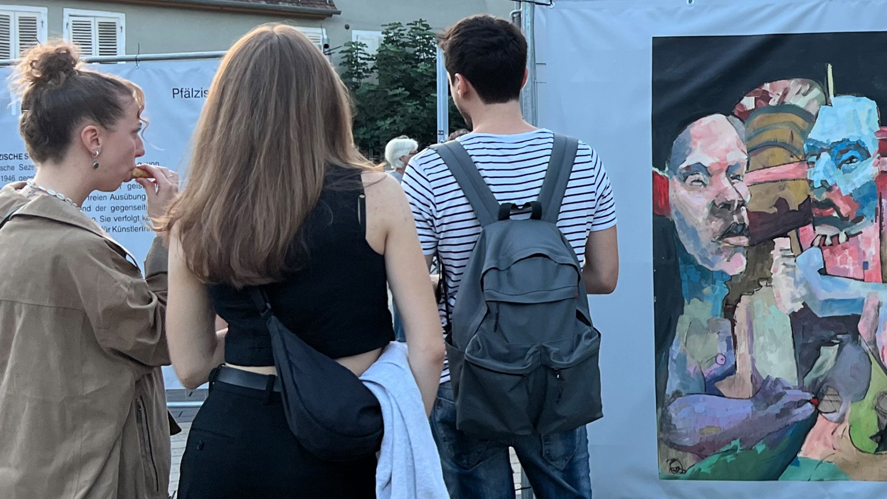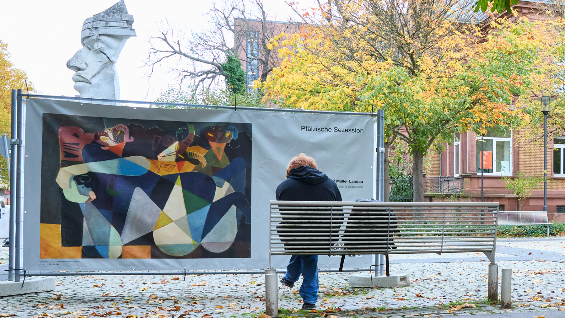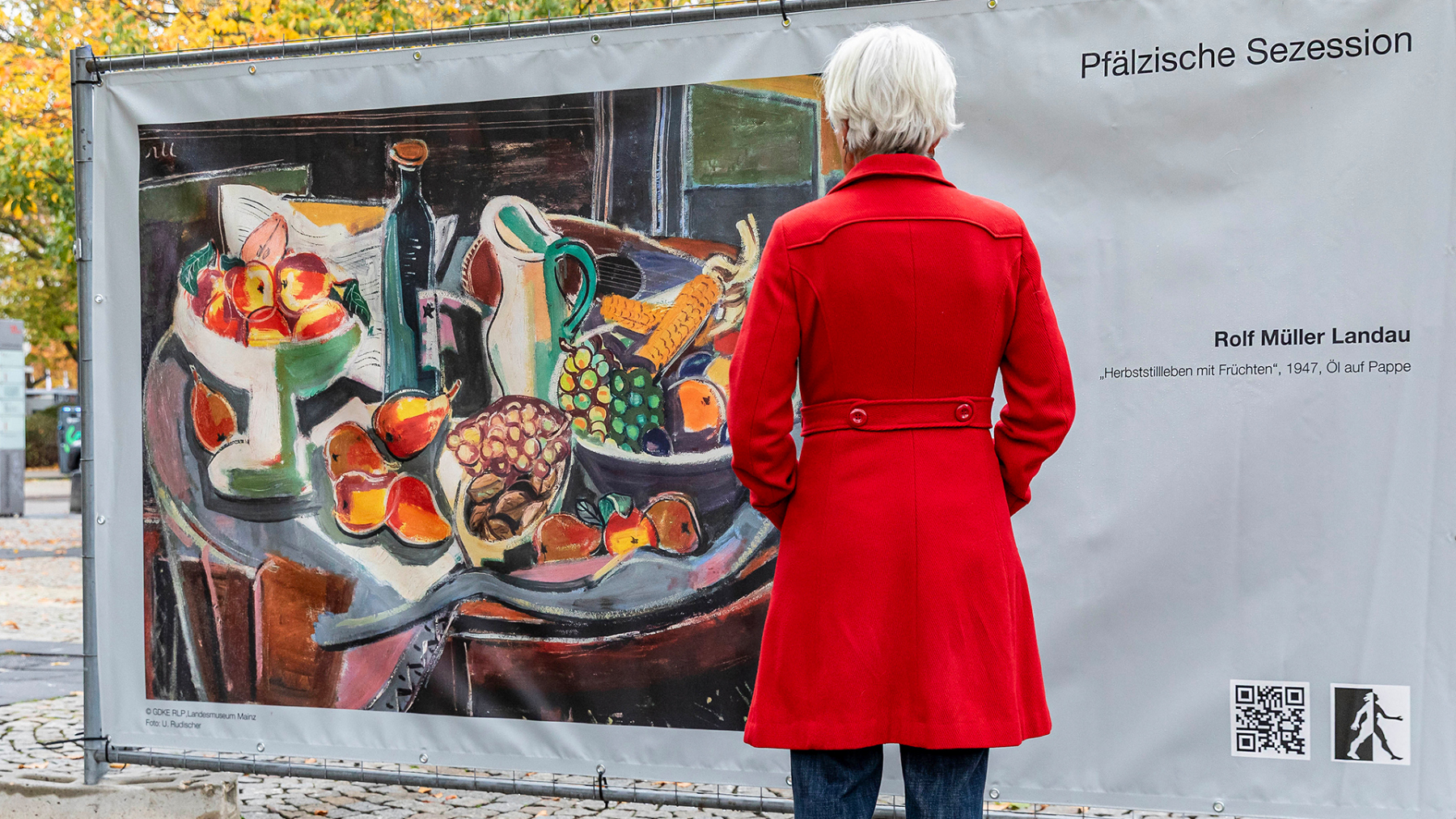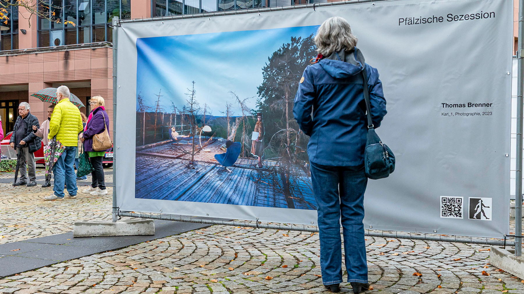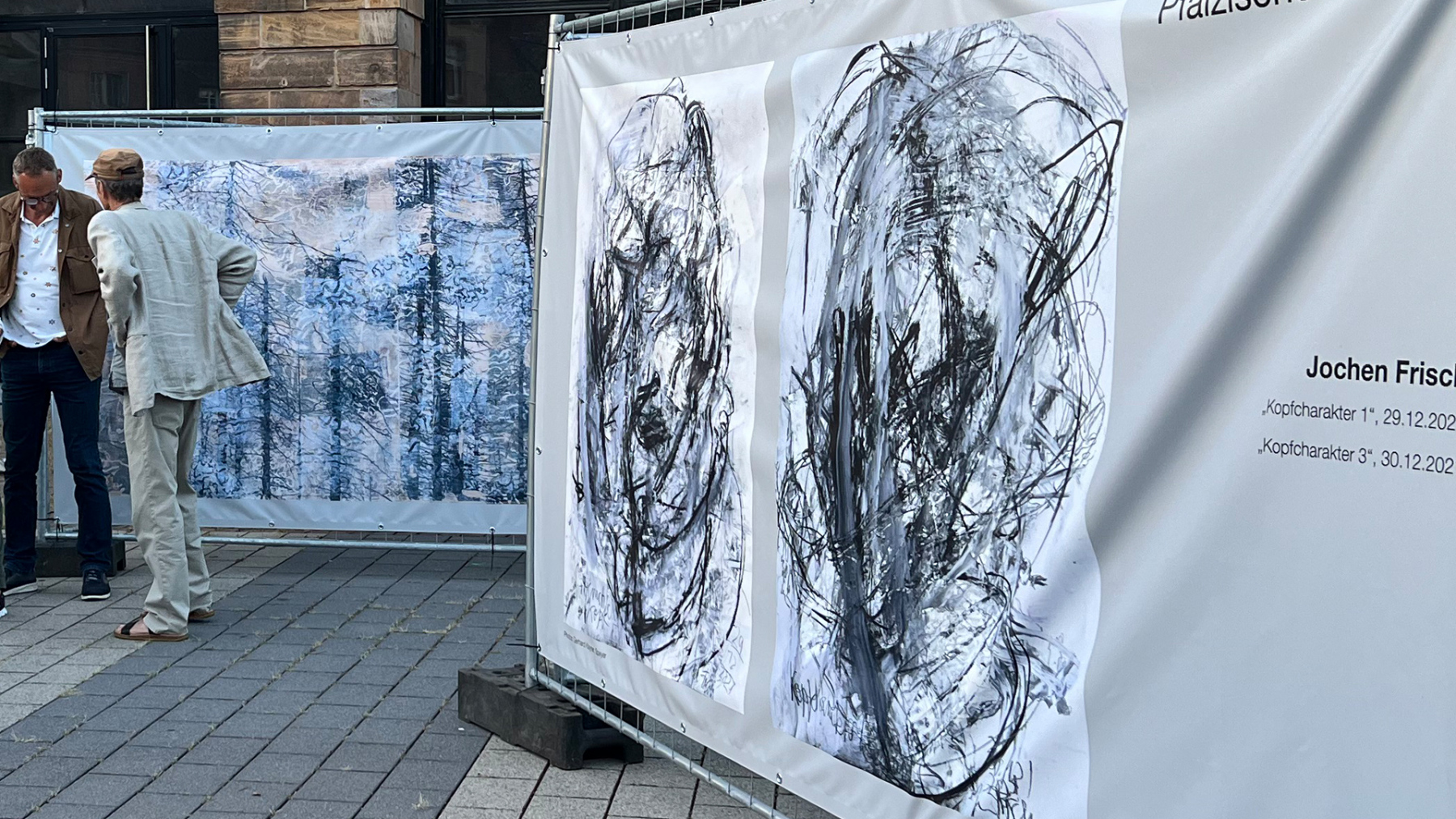 Die Pfälzische Sezession brachte 16 großformatige Banner mit aktuellen Kunstwerken (Malerei, Grafik, Plastik) nach Kaiserslautern, das Citymanagement kümmert sich um die entsprechende Infrastruktur für die Ausstellung: 4 Wochen im Spätherbst- eine Kunstausstellung im öffentlichen Raum, für alle Menschen in der Stadt, 24 Stunden am Tag. Da dieser Platz gerne von jungen Menschen unterschiedlicher Nationalität genutzt wird, war es super zu erleben, wie Kunst jenseits von Sprach- oder Kulturunterschieden angenommen wird. Die Vernissage auf dem Theatervorplatz wurde künstlerisch begleitet von Present Art Collection (H. Engelhardt, Martin Haberer). Trotz Regen kamen Besucher und es gab wieder regen Austausch über Kunst, begleitet von Musik und Cremant … Germersheim in der Planung/2026