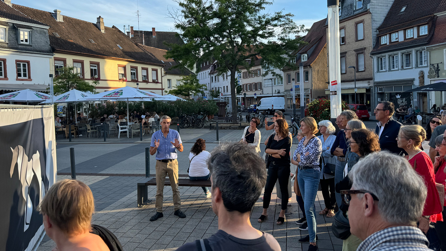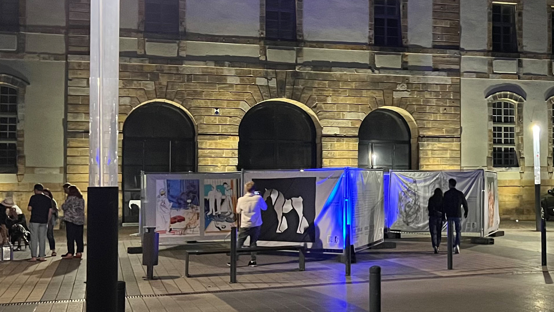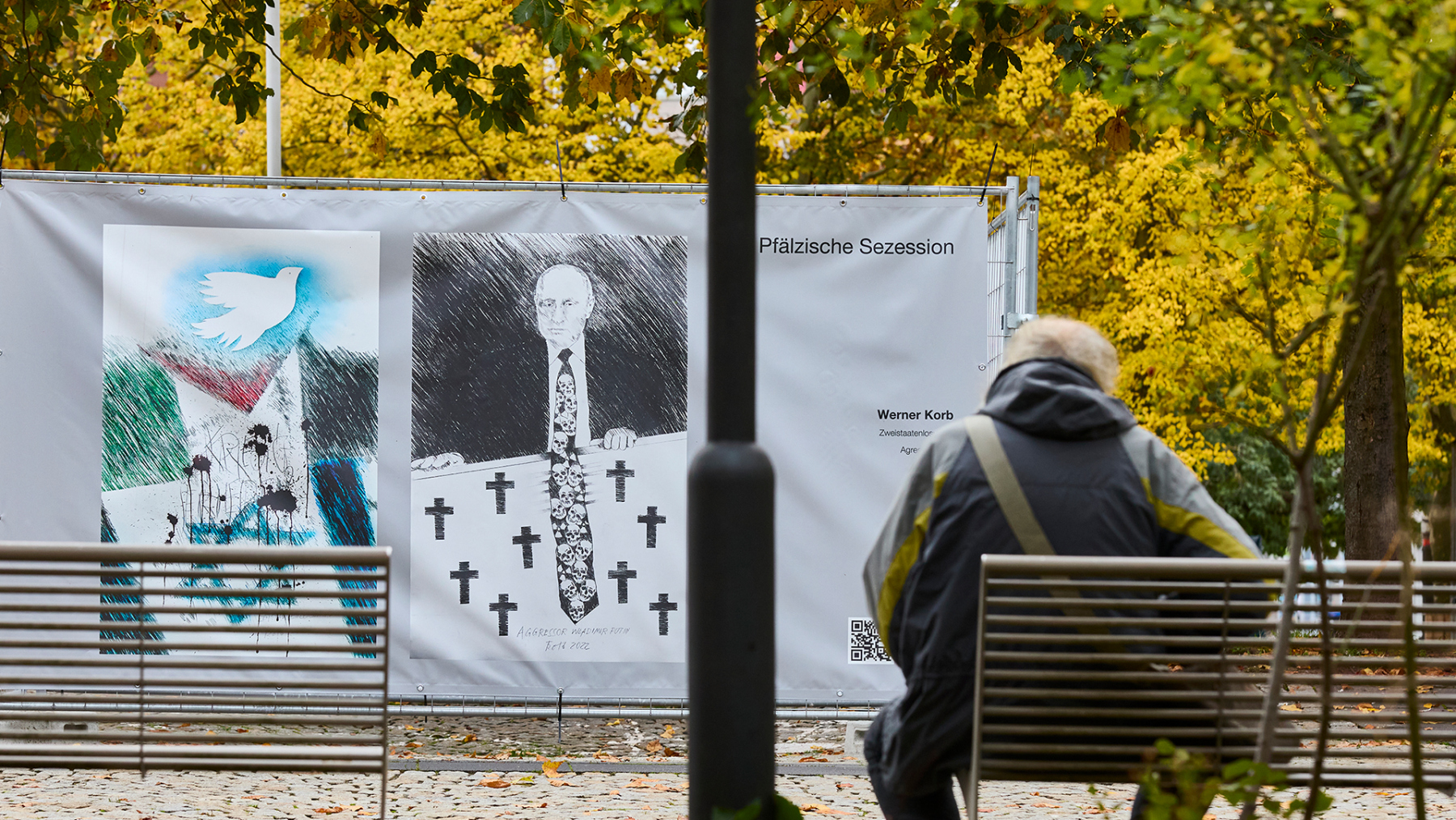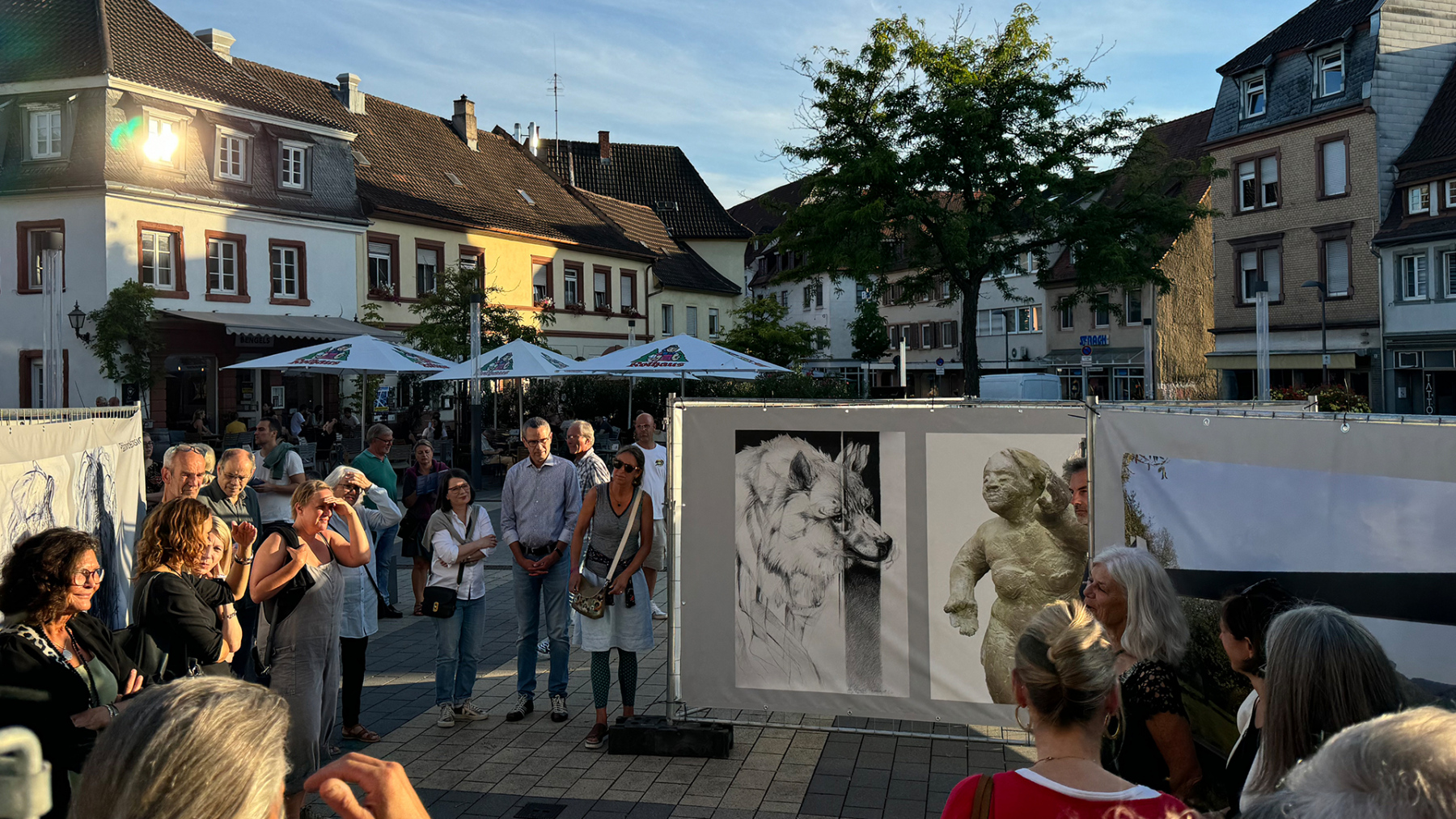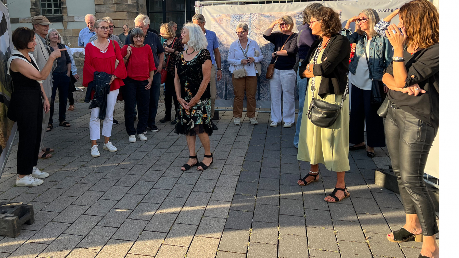 Die Pfälzische Sezession brachte 16 großformatige Banner mit aktuellen Kunstwerken (Malerei, Grafik, Plastik) nach Kaiserslautern, das Citymanagement kümmert sich um die entsprechende Infrastruktur für die Ausstellung: 4 Wochen im Spätherbst- eine Kunstausstellung im öffentlichen Raum, für alle Menschen in der Stadt, 24 Stunden am Tag. Da dieser Platz gerne von jungen Menschen unterschiedlicher Nationalität genutzt wird, war es super zu erleben, wie Kunst jenseits von Sprach- oder Kulturunterschieden angenommen wird. Die Vernissage auf dem Theatervorplatz wurde künstlerisch begleitet von Present Art Collection (H. Engelhardt, Martin Haberer). Trotz Regen kamen Besucher und es gab wieder regen Austausch über Kunst, begleitet von Musik und Cremant … Germersheim in der Planung/2026