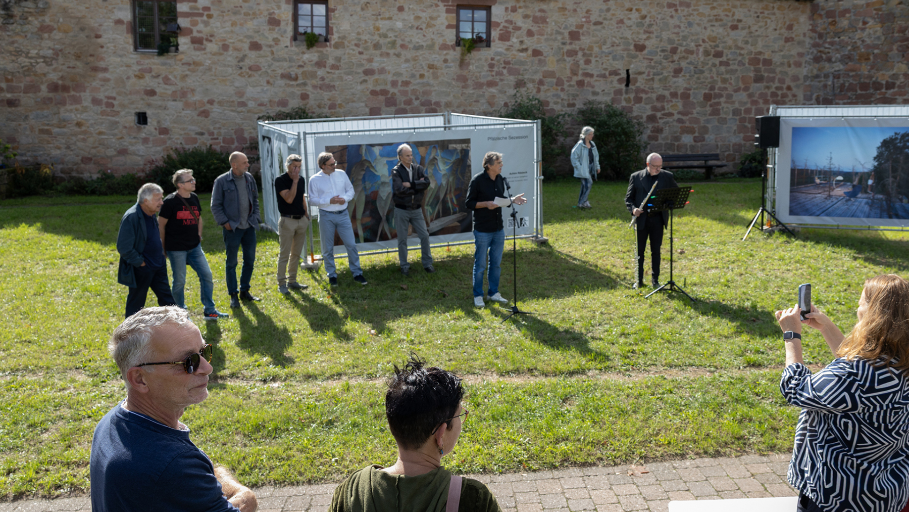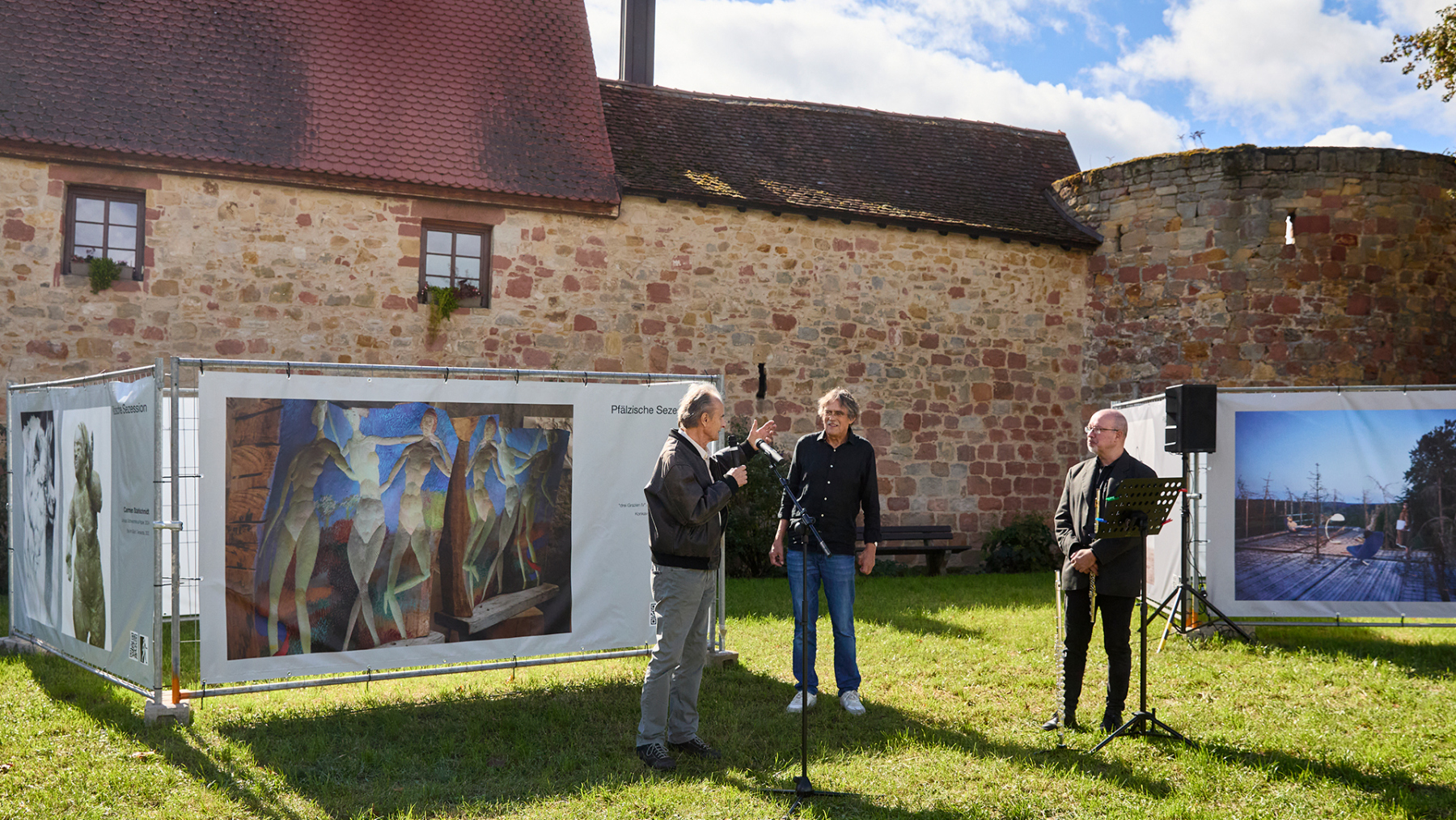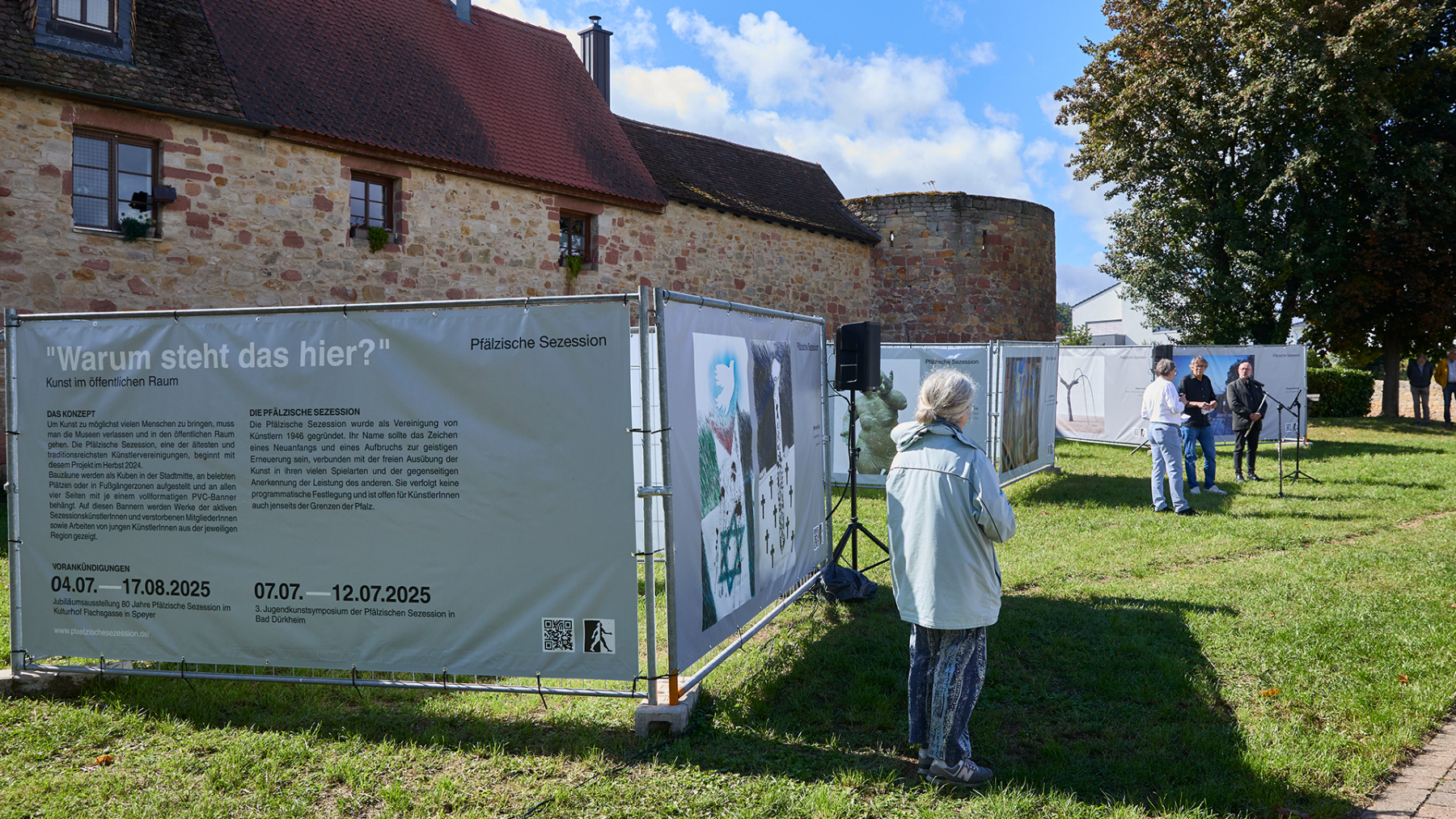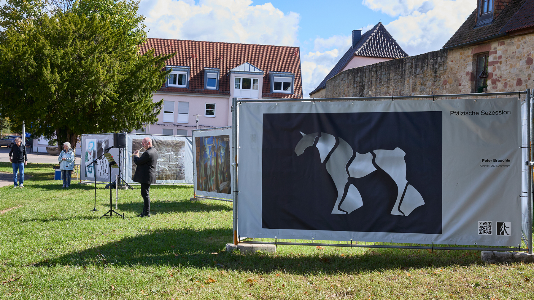 In Kooperation mit dem Kulturverein Wachenheim konnten wir 12 große Banner auf der Wiese am Diebsturm/Stadtmauer in Wachenheim präsentieren. Bei Sonnenschein und herbstlicher Wärme war es eine sehr gut besuchte Vernissage, begleitet von kurzweiliger Ansprache und einer Querflöte Großen Dank an den sehr aktiven und extrem gut strukturierten Kulturverein – so machen Kunstprojekte Freude…