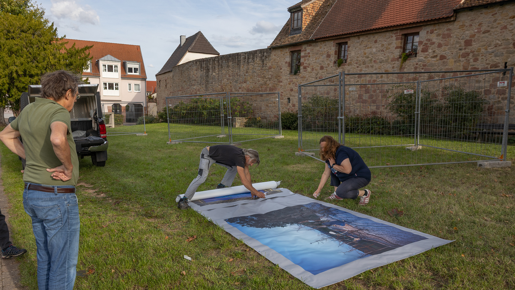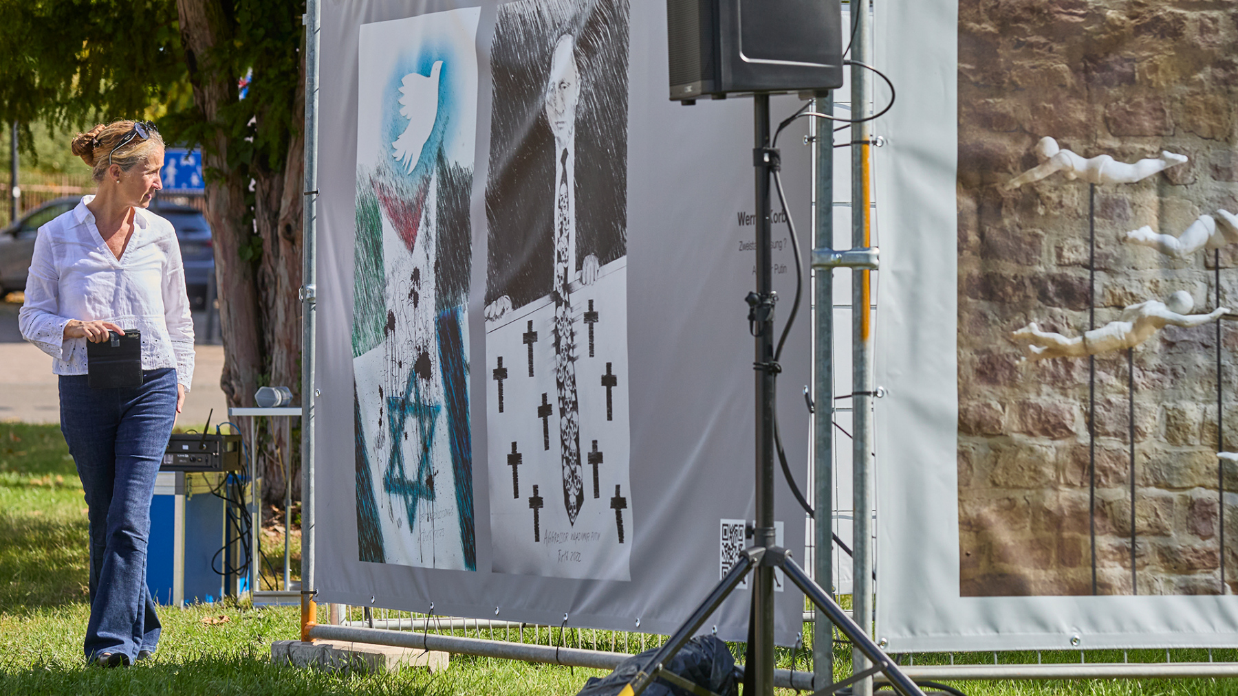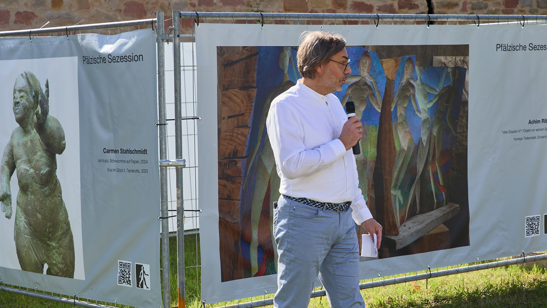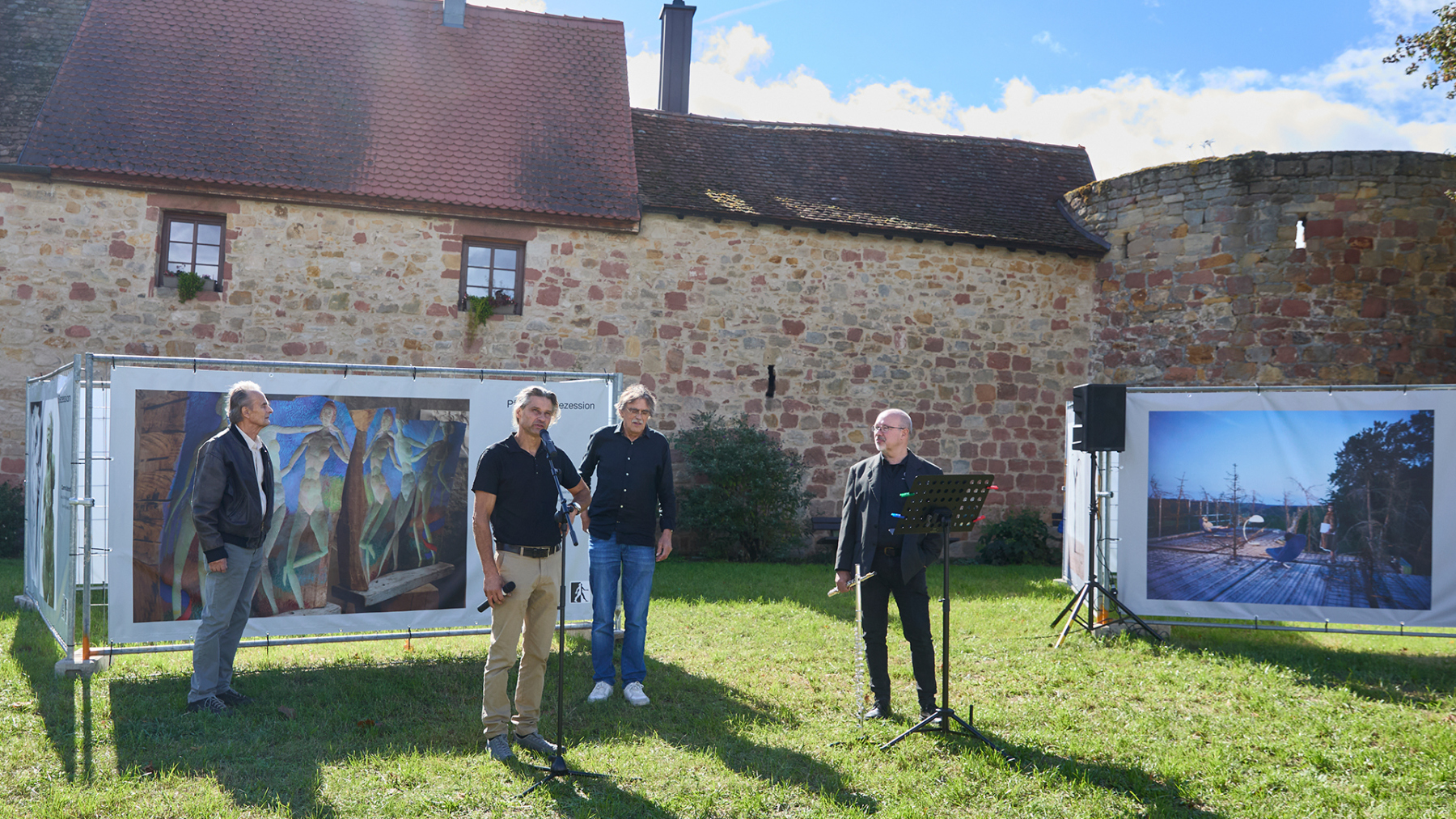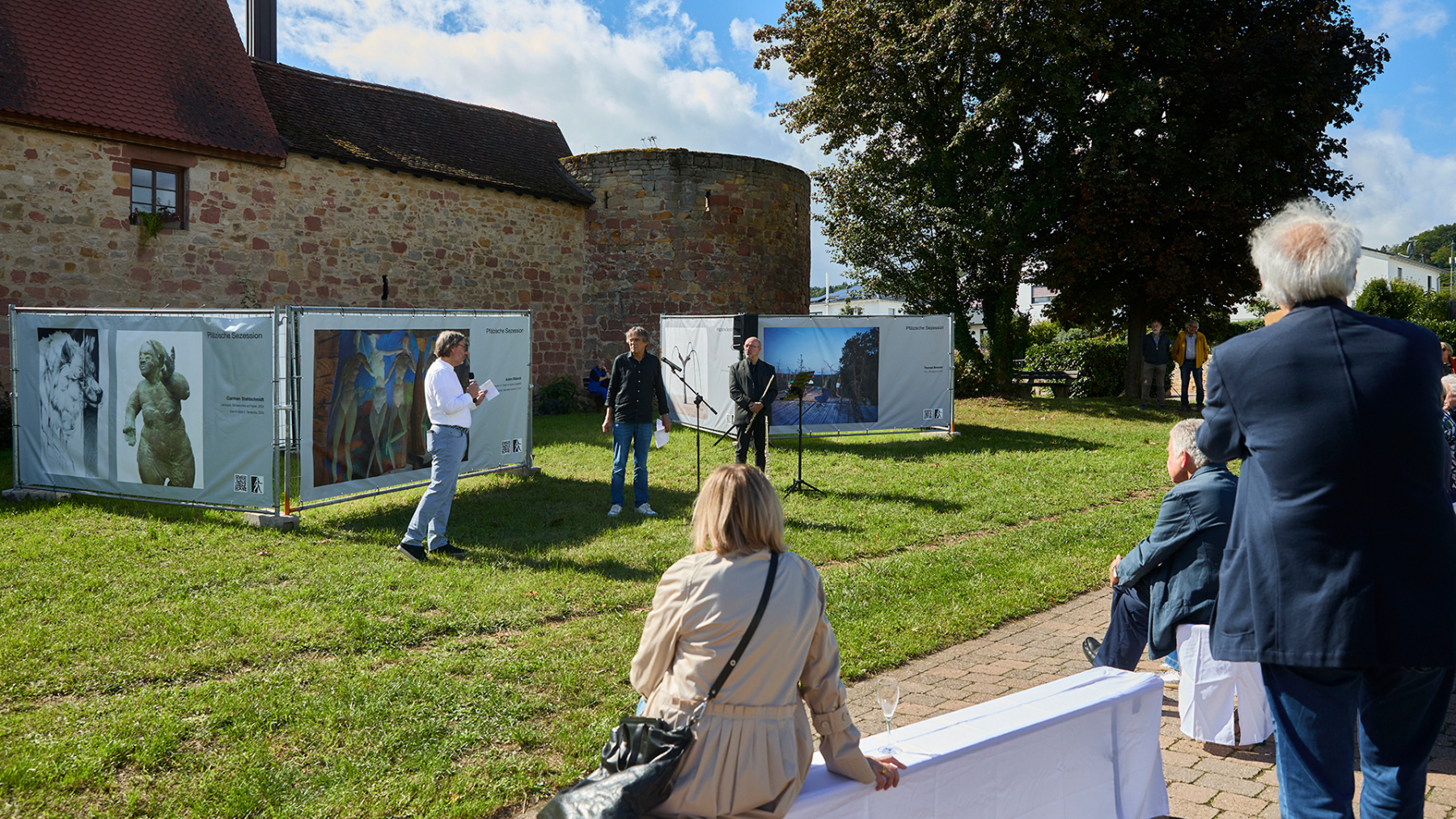 In Kooperation mit dem Kulturverein Wachenheim konnten wir 12 große Banner auf der Wiese am Diebsturm/Stadtmauer in Wachenheim präsentieren. Bei Sonnenschein und herbstlicher Wärme war es eine sehr gut besuchte Vernissage, begleitet von kurzweiliger Ansprache und einer Querflöte Großen Dank an den sehr aktiven und extrem gut strukturierten Kulturverein – so machen Kunstprojekte Freude…